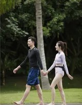 这组照片捕捉了多种相处场景。有二人身着简单白T恤和牛仔裤,在游乐场同骑木马、共玩跷跷板的童趣时刻,清爽的情侣穿搭衬托出青春恋爱的纯粹与快乐。也有在篮球场上,张铭恩化身“私人教练”,从身后环抱徐璐,手把手教导投篮的专注瞬间。照片中,徐璐扎起双麻花辫,少女感十足,而张铭恩的贴身指导和后续将她扛在肩上的举动,则充满了自然的保护欲与男友力。运动结束后,张铭恩用腿给徐璐当枕头,并贴心扶着她的肩膀,那一瞬间的眼神被镜头精准捕捉,被媒体形容为“眼神里全是宠溺”。这些互动没有刻意表演的痕迹,更像是一对普通情侣日常生活的甜蜜切片。